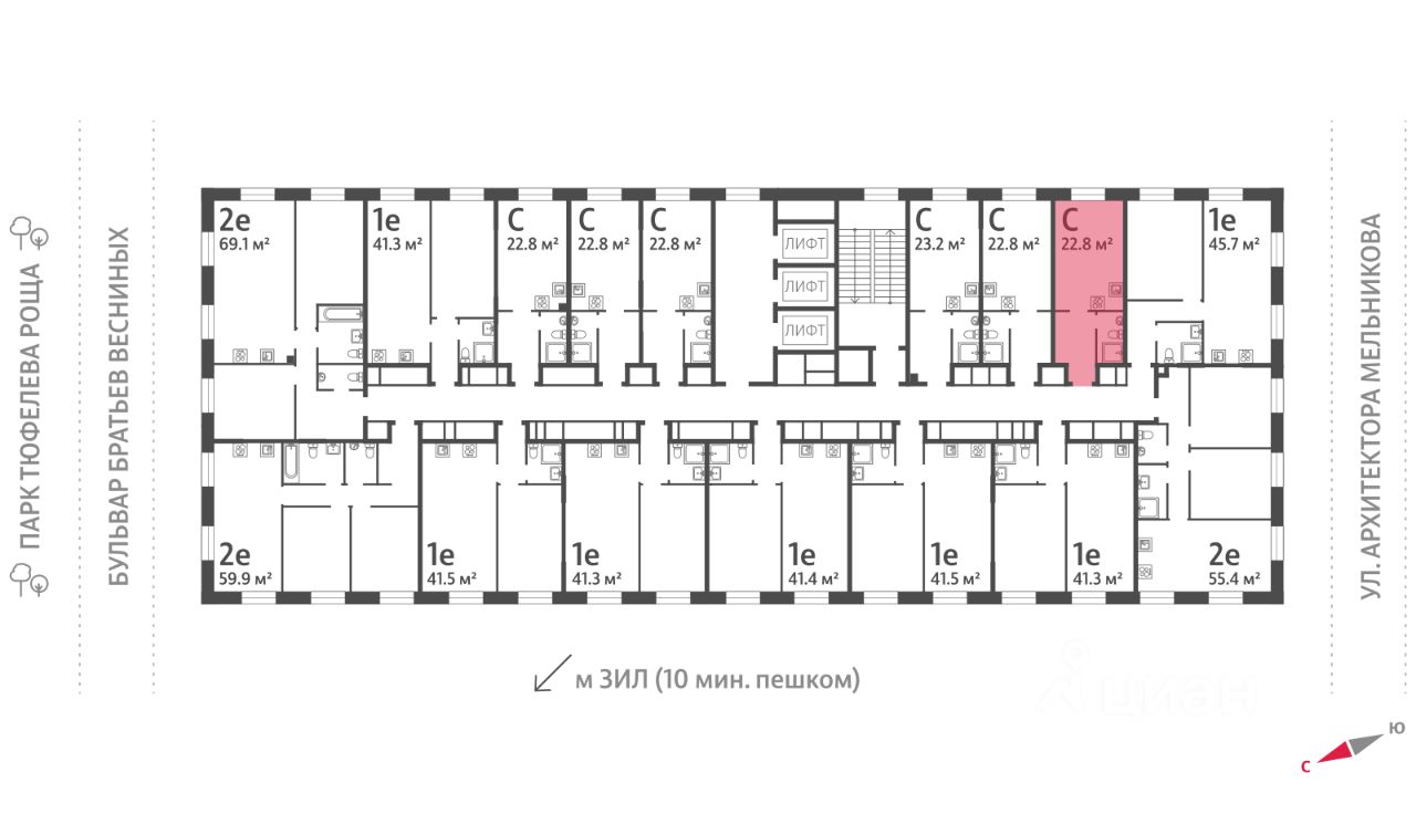 Продаётся квартира-студия в доме 18 (ЗИЛАРТ ГРАНД) ЖК "ЗИЛАРТ" общей площадью 22.8 кв. метров на 26 этаже.