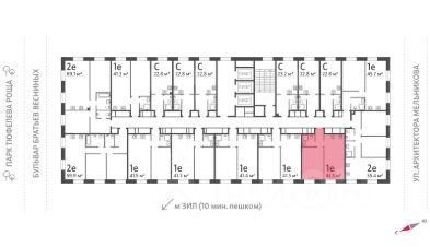 Продаётся 1-комнатная квартира в доме 18 (ЗИЛАРТ ГРАНД) ЖК "ЗИЛАРТ" общей площадью 41.3 кв. метров на 26 этаже.