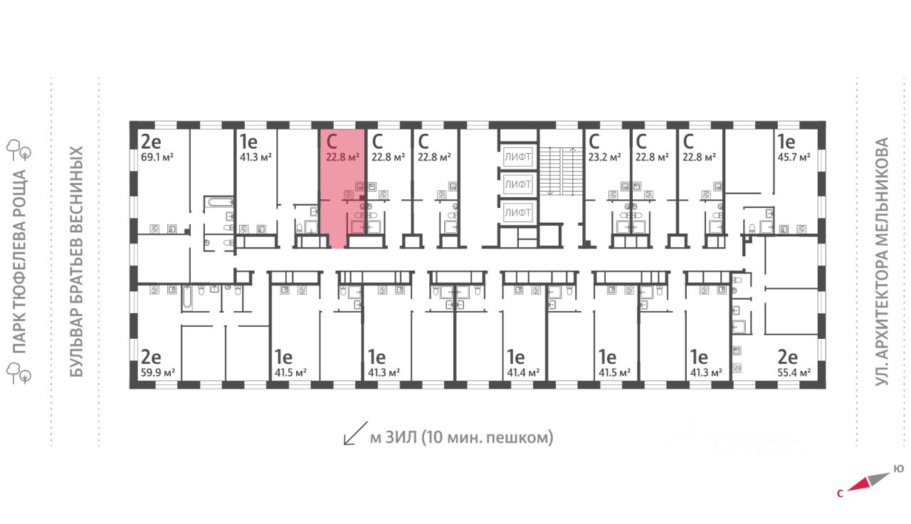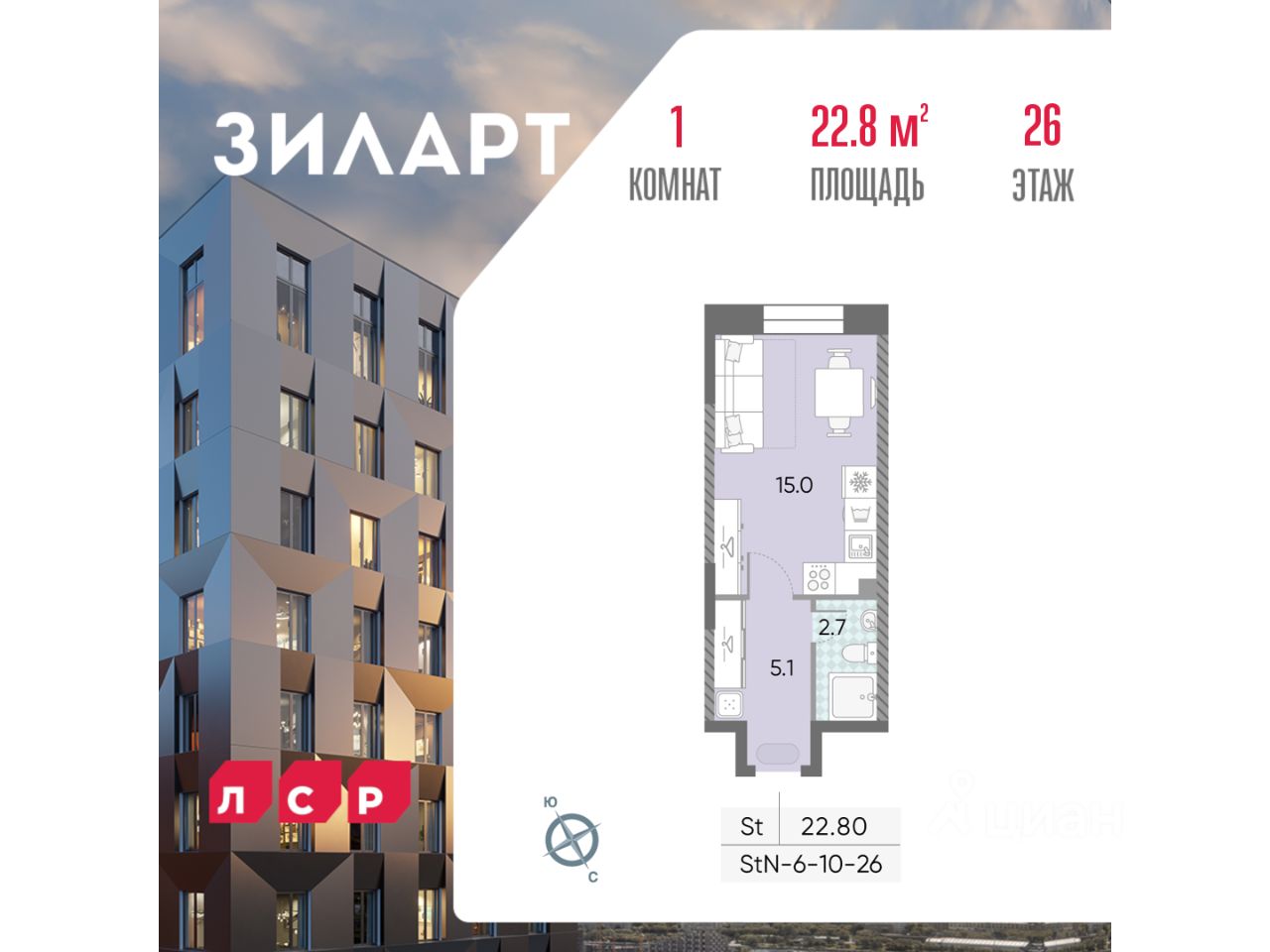 Продаётся квартира-студия в доме 18 (ЗИЛАРТ ГРАНД) ЖК "ЗИЛАРТ" общей площадью 22.8 кв. метров на 26 этаже.