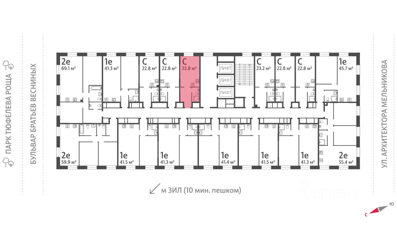Продаётся квартира-студия в доме 18 (ЗИЛАРТ ГРАНД) ЖК "ЗИЛАРТ" общей площадью 22.8 кв. метров на 26 этаже.