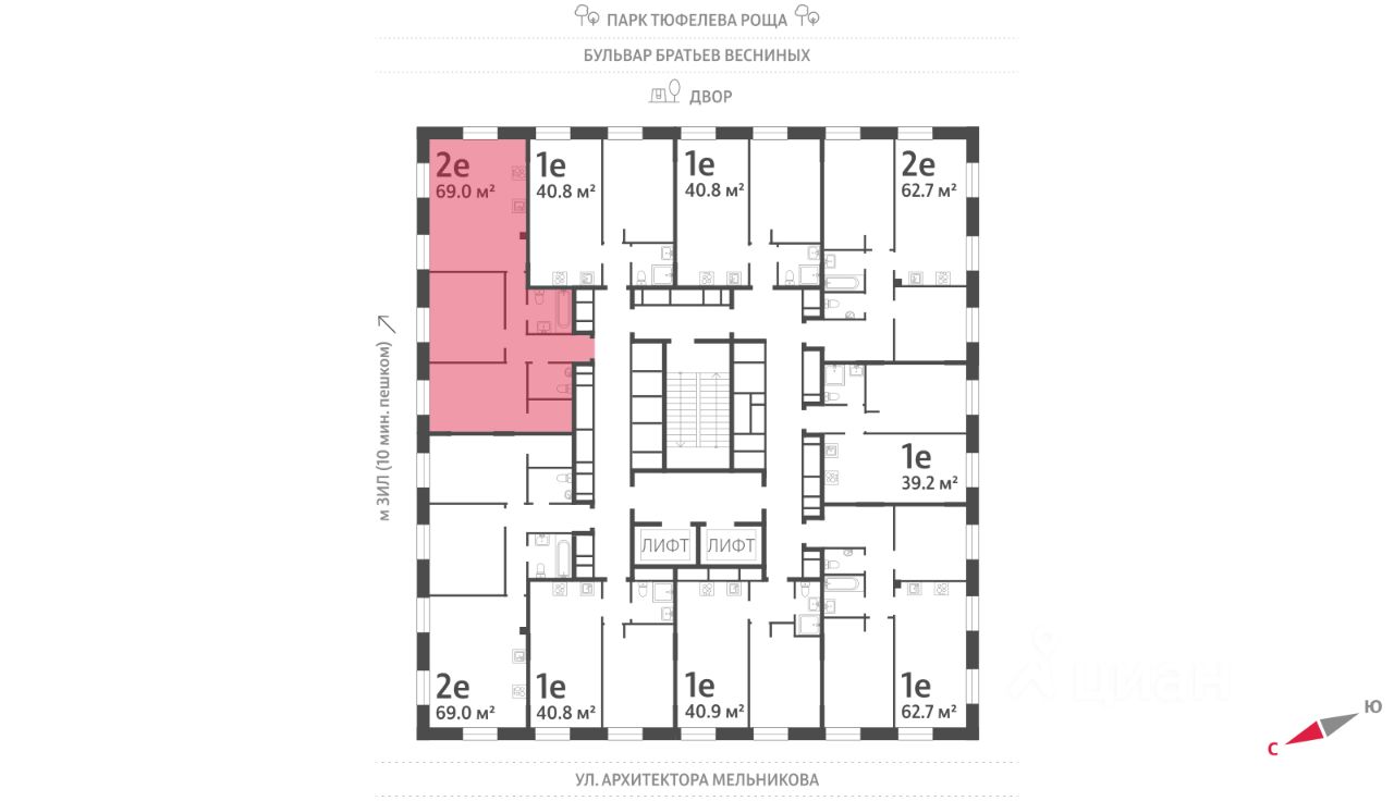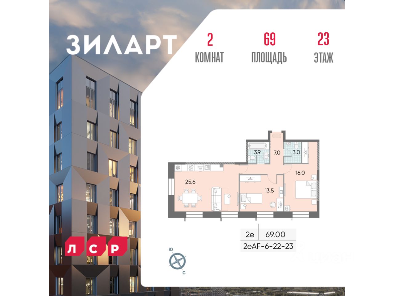 Продаётся 2-комнатная квартира в доме 18 (ЗИЛАРТ ГРАНД) ЖК "ЗИЛАРТ" общей площадью 69 кв. метров на 23 этаже.