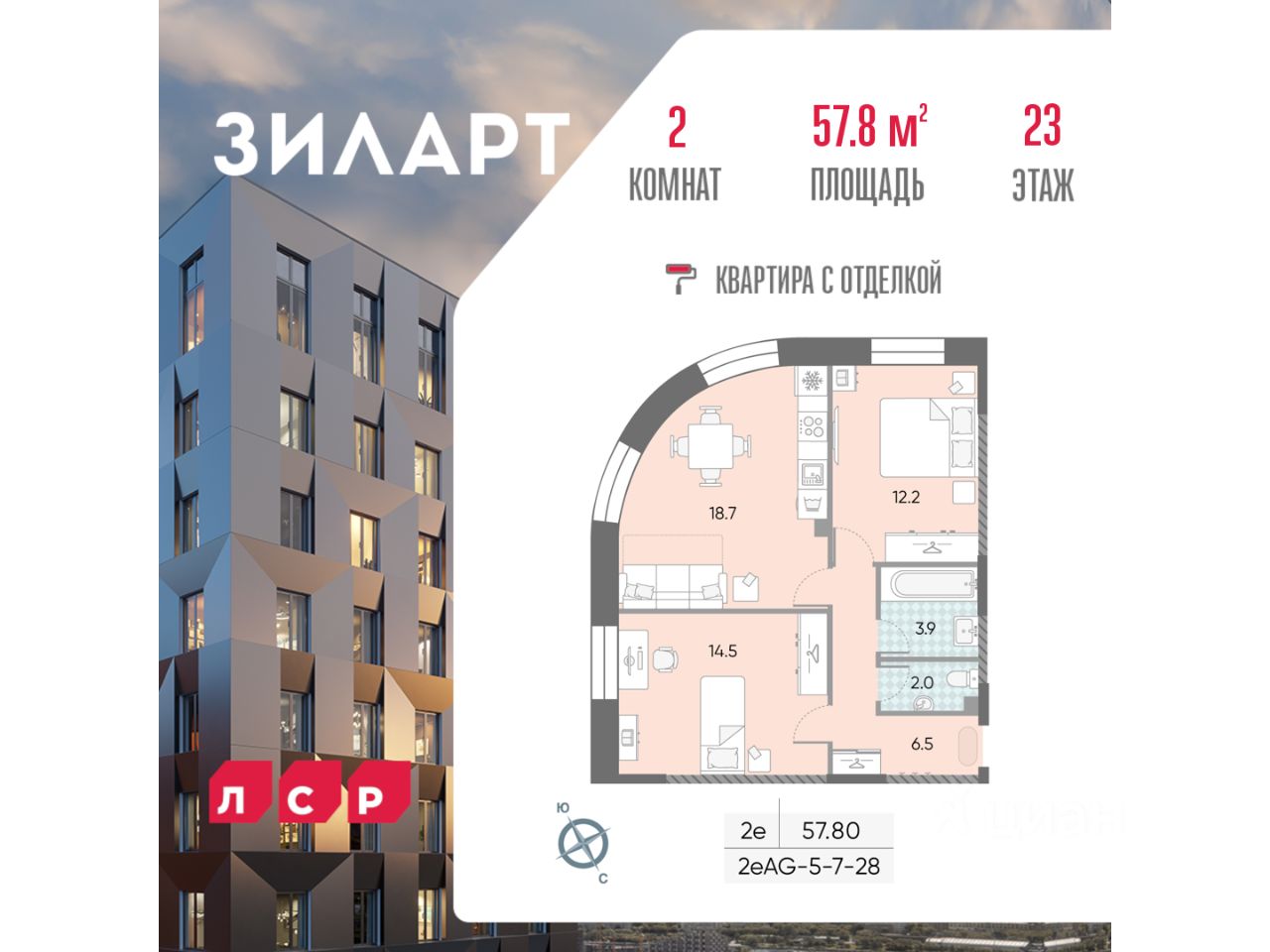 Продаётся 2-комнатная квартира в доме 18 (ЗИЛАРТ ГРАНД) ЖК "ЗИЛАРТ" общей площадью 57.8 кв. метров на 23 этаже.