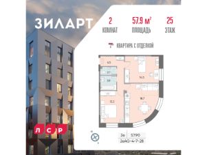 Продаётся 2-комнатная квартира в доме 18 (ЗИЛАРТ ГРАНД) ЖК "ЗИЛАРТ" общей площадью 57.9 кв. метров на 25 этаже.