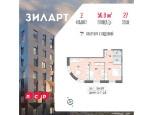 Продаётся 2-комнатная квартира в доме 18 (ЗИЛАРТ ГРАНД) ЖК "ЗИЛАРТ" общей площадью 56.8 кв. метров на 27 этаже.