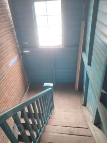 На второй этаж ведёт старенькая лестница в деревянной пристройке, но сам дом кирпичный, стены толщиной 75 см, зимой хорошо держат тепло, а летом прохладу.