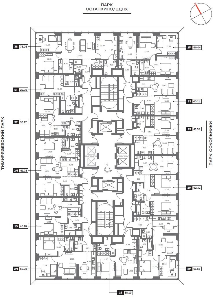 - На 4041 этажах видовые пентхаусы площадью до 200 м²;