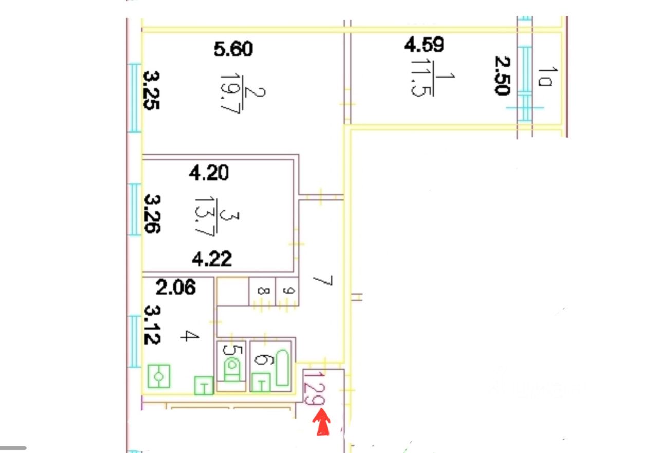 Продаётся 1/6 доля в трех-комнатной квартире общей площадью 62.5 м2, жилой площадью 44.9м2
