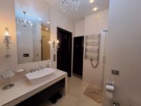 С дизайнерским ремонтом ( спальня, детская , гoстиная и большая куxня , три санузла, три гардеробных комнаты, рабочий кабинет , застекленная лоджия ). В реальности лучше, чем на фото. Квартира продается с мебелью и современной бытовой техникой (Кuppersbusch и Miele) Кухня из шпона эбенового дерева, мебель в спальне из шпона эвкалипта, сантехника villeroy&boch. Два встроенных шкафа, теплые полы везде. Высота потолков больше 3-х метров. Окна с повышенными тепло- и шумозащитными свойствами. Во всех комнатах кондиционеры daikin, встроенный пылесос по всей квартире- beam. В квартире охранная и пожарная сигнализация. Закрытая территория с охраной и видеонаблюдением, с детской площадкой, с подземным паркингом. (имеется машиноместо с подъемником на 2 автомобиля). В доме 3 скоростных лифта. В шаговой доступности парковая зона, спортивный комплекс "Крылатское", гребной канал, горнолыжный спуск в Крылатском, ТРК Кунцево-плаза, школа Олимп-плюс, ЦКБ Управделами Президента, а также детская поликлиника, дет/сады и школы. В собственности 5 лет, один взрослый собственник. обременений нет. В двух шагах от метро квартира 150 кв.м.