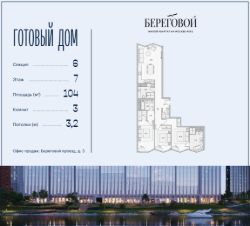 Река. Парк. Сити. Готовый дом в идеальном месте. Продается 3-комнатная квартира на 7 этаже с панорамным остеклением и видом на Береговой пр-д. Береговой — квартал-курорт в центре столицы. Готовый дом на первой линии Москвы-реки. Пешеходная набережная начинается прямо от дома — никаких дорог между вами и рекой. Уникальное сочетание природы парка Фили и ритма Сити. Ключи от нового образа жизни в Береговом: • 12 террас на крышах — ваши виды на Москву с высоты птичьего полета • Пешеходная набережная прямо у дома — ни одной машины между вами и рекой • Лобби с камином, переговорной и консьерж-сервисом • Флагманский Encore Fitness — самый большой в сети (4700 м²) с бассейном, термами и спа-комплексом • Детство на берегу Москвы-реки — в рамках проекта будут построены две школы и детский сад рядом с домом • Гастрономическая набережная: рестораны и премиум-сервисы откроются на первых этажах • Причал "Береговой" рядом с домом — путешествуйте по городу, пока другие стоят в пробках • Безопасность и уединение: контроль доступа на территорию, видеонаблюдение и круглосуточная диспетчерская • Двухуровневый подземный паркинг и кладовые Безупречная квартира для жизни: • Пространство света и воздуха: панорамные окна и высокие потолки 3.2 м • Технологии: центральное кондиционирование и роботизированная система очистки фасадов — вид из окна всегда будет идеальным • Совершенство планировки: просторная кухня-гостиная, минимум коридоров, максимум полезной площади • Квартира без отделки — возможность раскрыть преимущества планировки в вашем уникальном интерьере. Или выбирайте свою версию идеального дома в коллекции планировок: • С изолированными спальнями • Мастер-спальнями с гардеробными и ванными • Видовые ванные комнаты • Функциональные постирочные Эксклюзивные лоты: • Пентахусы с приватными террасами • Двухуровневые пентхаусы Локация, о которой мечтают 15 минут до Сити на машине — и вы в эпицентре деловой жизни. Две станции метро в пешей доступности — когда каждая минута на счету. Утром — пробежка по парку Фили, вечером — прогулка на велосипеде вдоль реки, выходные — водный спорт в Крылатском. Речные трамвайчики вместо такси, зеленые парки и благоприятная экология — привилегии престижного ЗАО Москвы. Условия покупки: выгодные программы покупки от застройщика, специальные условия при полной оплате. Оставляйте заявку на персональную презентацию в шоу-руме.