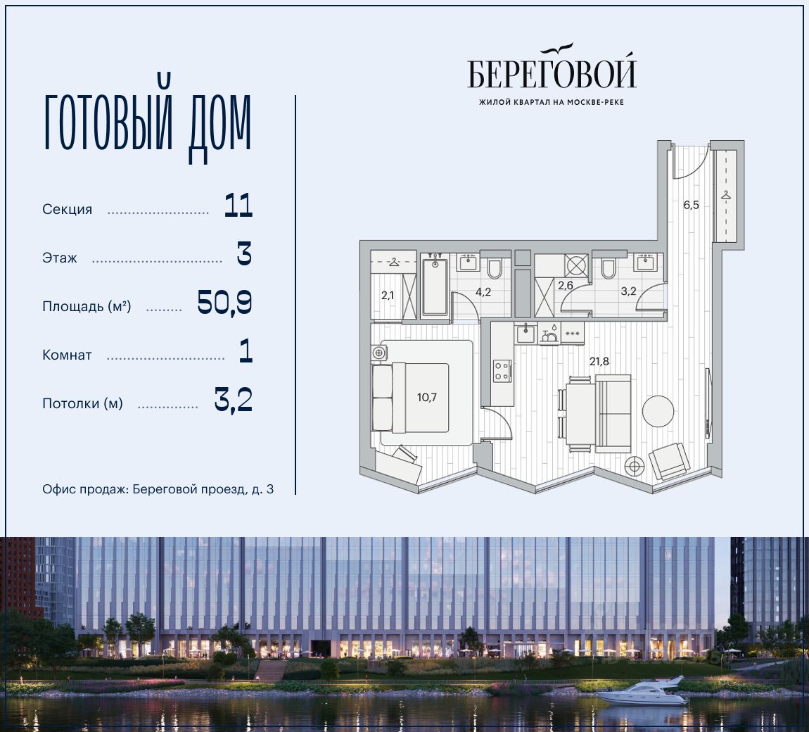 Река. Парк. Сити. Готовый дом в идеальном месте. Продается 1-комнатная квартира на 3 этаже с панорамным остеклением и видом на Береговой пр-д.