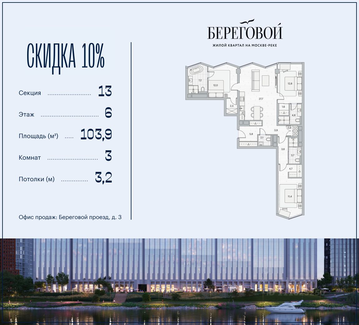 Река. Парк. Сити. Готовый дом в идеальном месте. Продается 3-комнатная квартира на 6 этаже с панорамным остеклением и видом на парковый двор. Береговой — квартал-курорт в центре столицы. Готовый дом на первой линии Москвы-реки. Пешеходная набережная начинается прямо от дома — никаких дорог между вами и рекой. Уникальное сочетание природы парка Фили и ритма Сити. Ключи от нового образа жизни в Береговом: • 12 террас на крышах — ваши виды на Москву с высоты птичьего полета • Пешеходная набережная прямо у дома — ни одной машины между вами и рекой • Лобби с камином, переговорной и консьерж-сервисом • Флагманский Encore Fitness — самый большой в сети (4700 м²) с бассейном, термами и спа-комплексом • Детство на берегу Москвы-реки — в рамках проекта будут построены две школы и детский сад рядом с домом • Гастрономическая набережная: рестораны и премиум-сервисы откроются на первых этажах • Причал "Береговой" рядом с домом — путешествуйте по городу, пока другие стоят в пробках • Безопасность и уединение: контроль доступа на территорию, видеонаблюдение и круглосуточная диспетчерская • Двухуровневый подземный паркинг и кладовые Безупречная квартира для жизни: • Пространство света и воздуха: панорамные окна и высокие потолки 3.2 м • Технологии: центральное кондиционирование и роботизированная система очистки фасадов — вид из окна всегда будет идеальным • Совершенство планировки: просторная кухня-гостиная, минимум коридоров, максимум полезной площади • Квартира без отделки — возможность раскрыть преимущества планировки в вашем уникальном интерьере. Или выбирайте свою версию идеального дома в коллекции планировок: • С изолированными спальнями • Мастер-спальнями с гардеробными и ванными • Видовые ванные комнаты • Функциональные постирочные Эксклюзивные лоты: • Пентахусы с приватными террасами • Двухуровневые пентхаусы Локация, о которой мечтают 15 минут до Сити на машине — и вы в эпицентре деловой жизни. Две станции метро в пешей доступности — когда каждая минута на счету. Утром — пробежка по парку Фили, вечером — прогулка на велосипеде вдоль реки, выходные — водный спорт в Крылатском. Речные трамвайчики вместо такси, зеленые парки и благоприятная экология — привилегии престижного ЗАО Москвы. Условия покупки: выгодные программы покупки от застройщика, специальные условия при полной оплате. Оставляйте заявку на персональную презентацию в шоу-руме.
