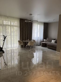 3. Кухня-гостиная - обеденный стол + стулья-кресла, диван с эффектом памяти, выполненный под заказ из высококачественных материалов летом 2024г. + пуф, кухонный гарнитур со всей встроенной техникой Samsung (микроволновая печь, духовой шкаф, варочная панель, вытяжка, холодильник, посудомойка bosh). Каменная столешница.