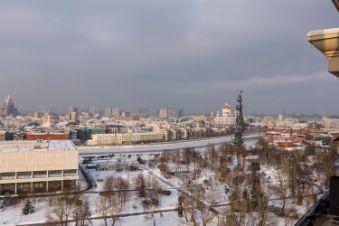 Из окон открываются виды на тихий зеленый сквер, храм Христа Спасителя, Новую Третьяковку и памятник Петру. Видовая квартира- видно пол Москвы)