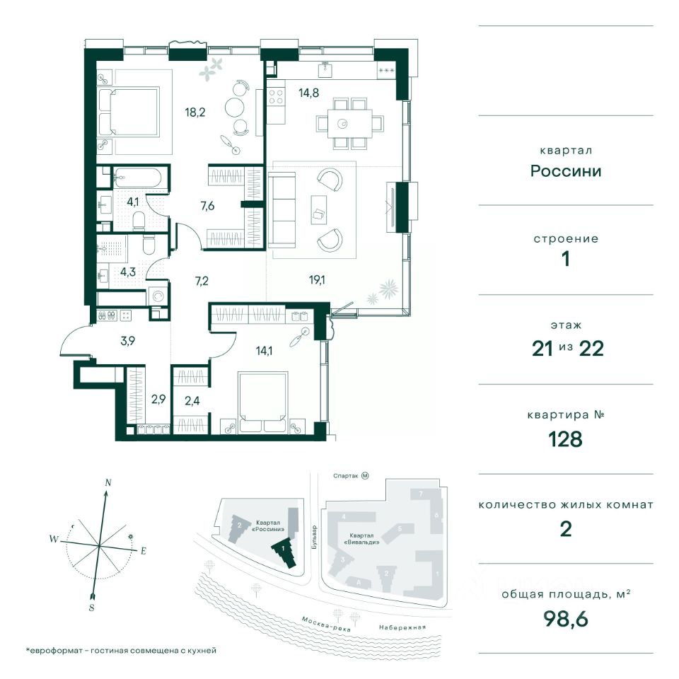 • Удобства на расстоянии приятной прогулки: супермаркеты, кафе, рестораны с верандами, салоны красоты, аптеки и многофункциональный центр для шоппинга и развлечений.