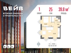 Продается 1-комнатная квартира общей площадью 39.8 кв. метров на 25 этаже жилого комплекса ВЕЙВ. Комплекс располагается на юге Москвы в районе Москворечье-Сабурово. В пешей доступности расположены станция МЦД "Москворечье" и станция метро "Борисово". Для автомобилистов есть удобное сообщение с Каширским шоссе.