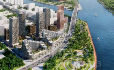 На первых этажах предусмотрены коммерческие помещения. В подземной части зданий находятся паркинги и кладовые помещения. Также проектом предусмотрено благоустройство набережной и создание 4-километровой парковой зоны и первого в столице водного парка.