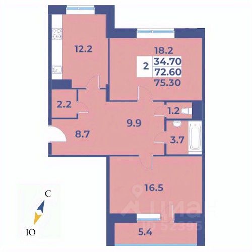 Продаётся 2-комнатная квартира в сданном доме (Корпус 5), срок сдачи: IV-кв. 2024, общей площадью 75.3 кв.м., на 5 этаже. Монолитный жилой дом комфорт класса, под литерами "А" и "Б". Облицовка вентилируемыми фасадами.