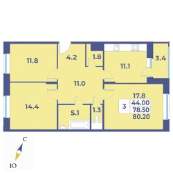 Продаётся 3-комнатная квартира в сданном доме (Корпус 5), срок сдачи: IV-кв. 2024, общей площадью 80.2 кв.м., на 3 этаже. Монолитный жилой дом комфорт класса, под литерами "А" и "Б". Облицовка вентилируемыми фасадами.