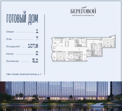 Река. Парк. Сити. Готовый дом в идеальном месте. Продается 2-комнатная квартира на 7 этаже с панорамным остеклением и видом на Береговой пр-д.