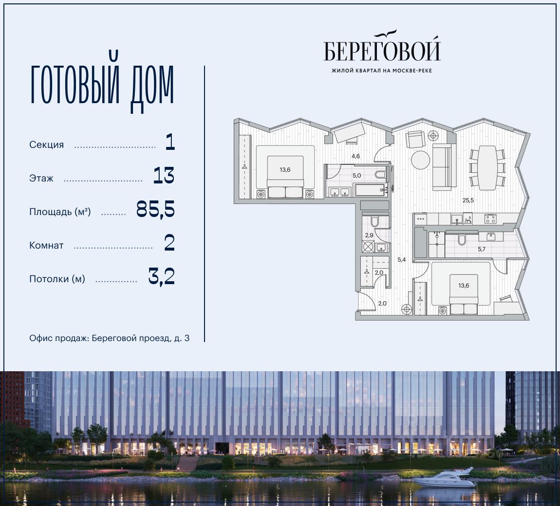 Береговой — квартал-курорт в центре столицы. Готовый дом на первой линии Москвы-реки. Пешеходная набережная начинается прямо от дома — никаких дорог между вами и рекой. Уникальное сочетание природы парка Фили и ритма Сити.