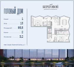 Река. Парк. Сити. Готовый дом в идеальном месте. Продается 2-комнатная квартира на 13 этаже с панорамным остеклением и видом на парковый двор.
