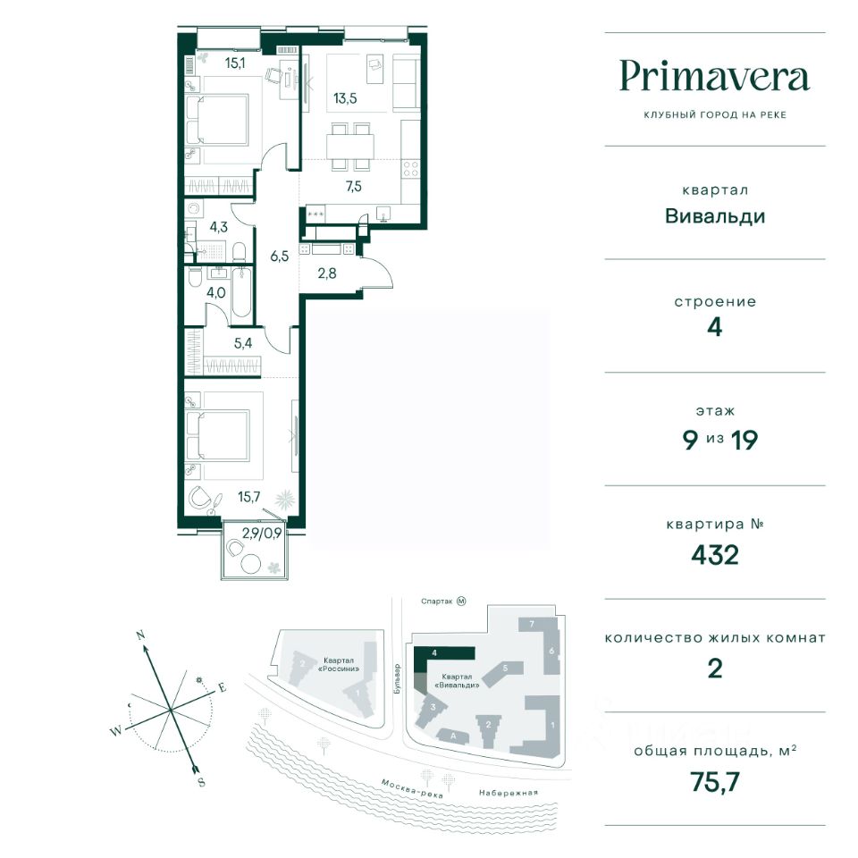 Клубный город на реке Primavera — это респектабельный проект премиум-класса на первой береговой линии Москвы-реки в экологически безупречном районе — Покровское-Стрешнево. Под панорамными окнами квартир расположился собственный экопарк, площадью 12 гектаров с сетью прогулочных дорожек, оборудованный детскими и спортивными площадками, а за ним набережная с собственным пляжем и зонами отдыха. Клубный город на реке Primavera предлагает впечатляющий выбор планировок для любого жизненного сценария: от просторных однокомнатных квартир до пентхаусов и квартир с видовыми террасами или патио. Выбирайте из 120 вариантов эргономичных планировок стандартного и евроформата. В проекте доступны квартиры площадью от 40 до 209 м², в каждой из которых открываются непревзойденные виды на реку, а угол обзора составляет 270 градусов. Из дизайнерских лобби открывается панорамный обзор на зеленый благоустроенный двор. Статусное мебелирование, потолки высотой 6 м и комфортная лаунж-зона отсылают к стилистике высококлассных пятизвездочных отелей. В Primavera есть все, что может предложить мегаполис, здесь все сосредоточено вокруг вас и настроено на ваши желания: - Всестороннее детское развитие в паре шагов от дома: 4 школы, 8 детских садов, развивающие центры с кружками и секциями. - Комфорт мегаполиса на расстоянии приятной прогулки: супермаркеты, кафе, рестораны с верандами на крыше, салоны красоты, аптеки, компании сферы услуг, многофункциональный центр для шоппинга и развлечений. - Умный дом: автоматизированное бесконтактное управление основными системами доступа, инфраструктуры и безопасности через мобильное приложение и специальные метки. Клубный город на реке Primavera выгодно отличается близостью к природе, совмещенной с насыщенной инфраструктурой.