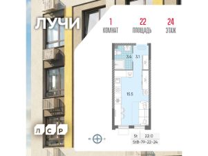 Продается студия общей площадью 22 кв. метров на 24 этаже жилого комплекса Лучи.