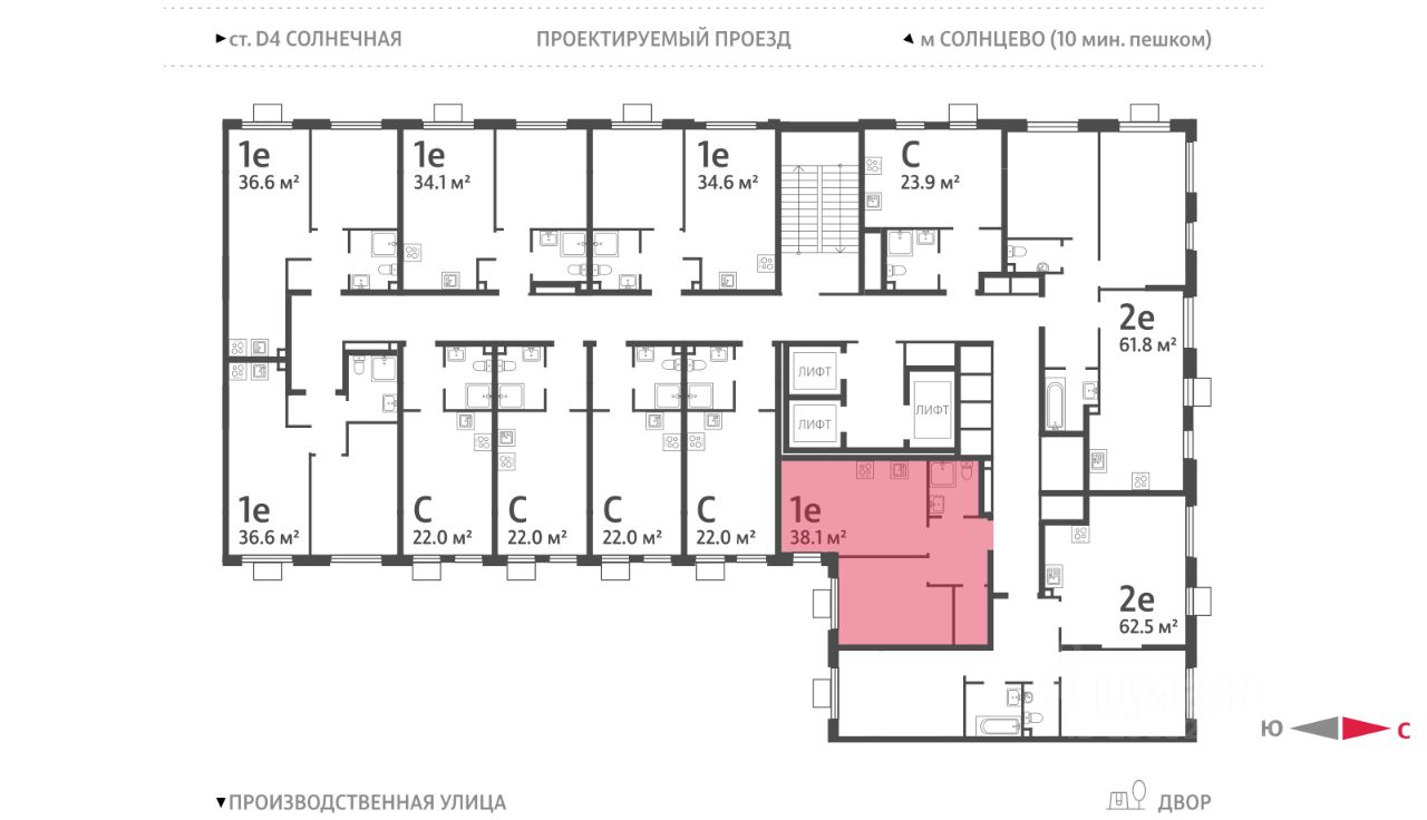 Продается 1-комнатная квартира общей площадью 38.1 кв. метров на 19 этаже жилого комплекса Лучи.