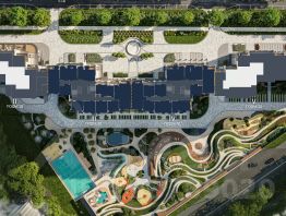 Реализованы концепция двор без машин, подземный 2-уровневый паркинг и обустроенная большая детская площадка.