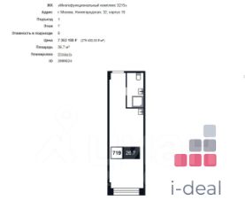 В продаже студия-апартаменты 26,7 м.кв.