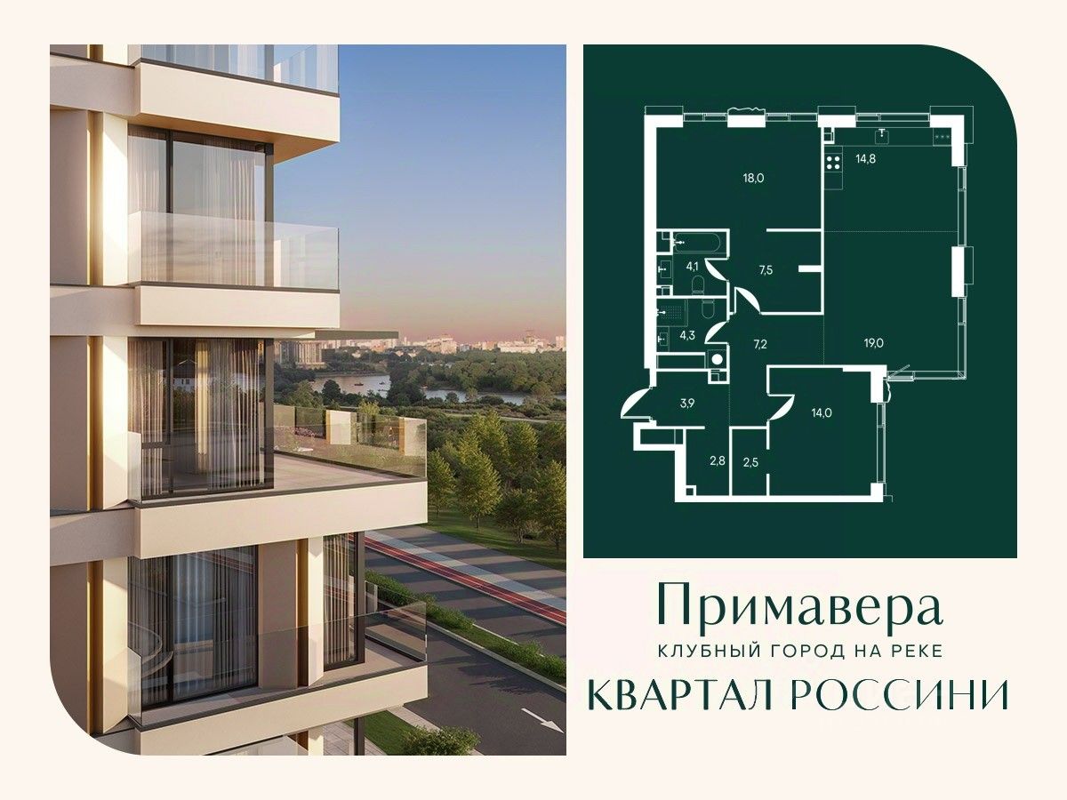 Клубный город на реке "Примавера" — это современный жилой комплекс премиум-класса, расположенный на первой береговой линии Москвы-реки в экологически чистом районе Покровское-Стрешнево. Под панорамными окнами квартир находится собственный экопарк с продуманной сетью прогулочных дорожек и современными детскими и спортивными площадками. За парком расположена набережная с собственным пляжем и зонами для отдыха. Клубный город на реке "Примавера" предлагает широкий выбор планировок для различных жизненных сценариев: от просторных однокомнатных квартир до пентхаусов и жилых помещений с террасами и патио. Выберите из 120 вариантов эргономичных планировок стандартного и евроформата. Из каждой квартиры открываются красивые виды на реку с углом обзора в 270 градусов. Дизайнерские лобби предлагают панорамный обзор на благоустроенный двор. Высокие потолки в 6 метров и качественная отделка создают атмосферу, схожую с пятизвездочными отелями. В "Примавера" есть всё необходимое для комфортной жизни в мегаполисе: • Образование для детей в шаговой доступности: 4 школы, 8 детских садов и развивающие центры с кружками и секциями. • Удобства на расстоянии приятной прогулки: супермаркеты, кафе, рестораны с верандами, салоны красоты, аптеки и многофункциональный центр для шоппинга и развлечений. • Умный дом: автоматизированное бесконтактное управление основными системами доступа и безопасности через мобильное приложение. Клубный город на реке "Примавера" выгодно сочетает комфорт городской жизни с близостью к природе. Живите в месте, где все создано для вашего удобства!