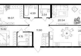 Продается трехкомнатная квартира без отделки 99,6 кв. м. в ЖК "Кутузов Il".