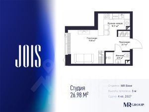 По переуступке от физического лица продается квартира площадью 26,98кв.м. с предчистовой отделкой (MR Base) на 33 этаже.