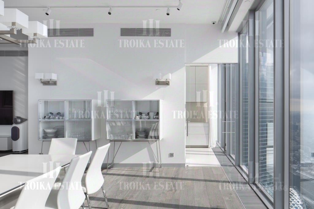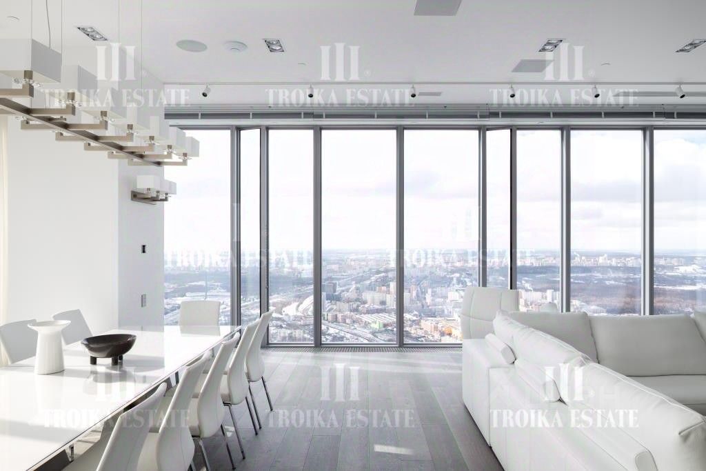 Роскошный видовой пентхаус с изысканным интерьером в светлых тонах. Мебель и техника премиальных марок FORMITALIA, FORMERIN, DRAENERT, DEMA, POGGENPOHL, GAGGENAU, V-ZAG, ANTONIOLUPI, NEBULA, FLOS. Полы выложены брошированной дубовой паркетной доской VIDEBOISTERRADOMBRA. Установлена система умный дом, в том числе датчик солнца на жалюзи.