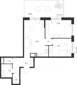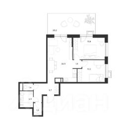 Общая площадь: 68,8 кв.м., жилая: 39,8 кв.м., площадь кухни-гостиной: 22,3 кв.м., высота потолков: 2,72 м., окна выходят во двор и на улицу.