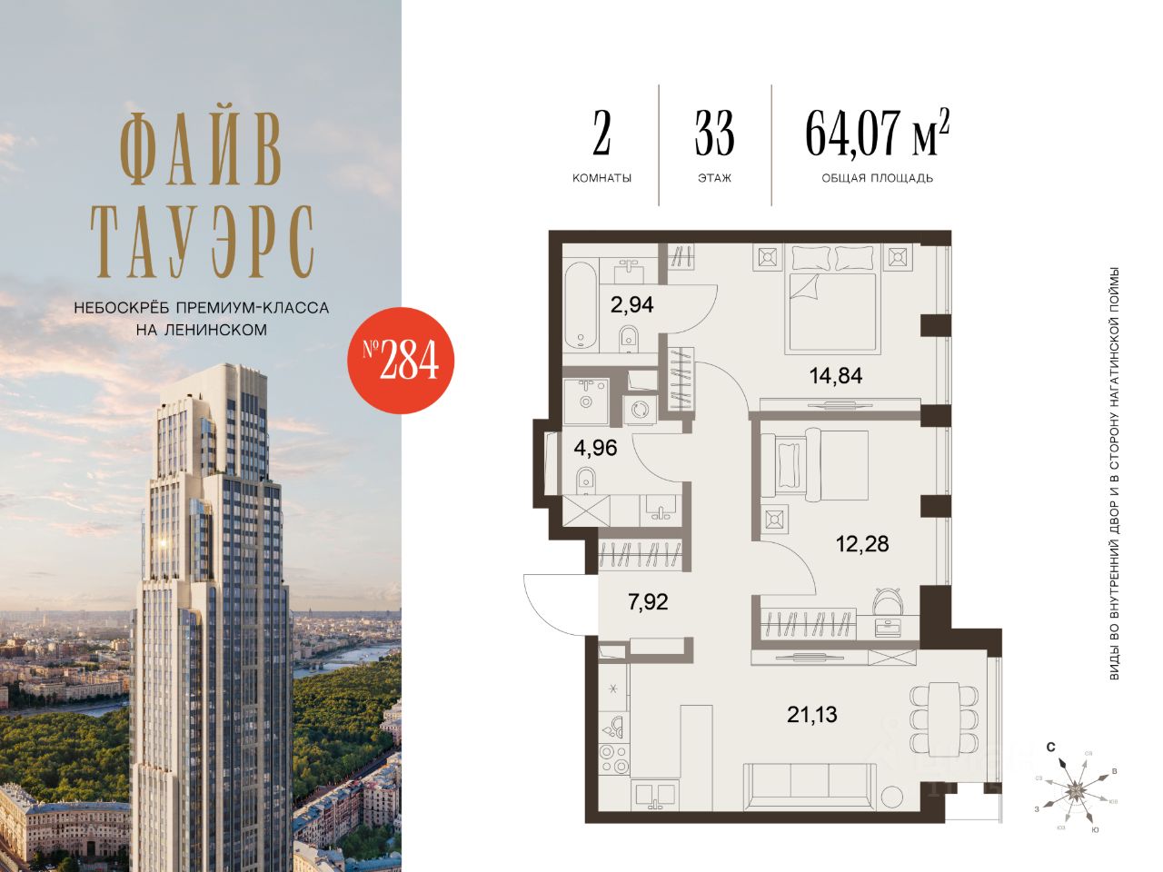 ФАЙВ ТАУЭРС — первый жилой небоскрёб на Ленинском проспекте и самый высокий дом столицы за пределами делового кластера "Москва-Сити". Премиальный небоскрёб представляет собой ультрасовременное, высокотехнологичное здание, идеальный синтез стилей культовых высоток Москвы и небоскребов Нью-Йорка и поражает воображение уникальными видами, монументальной роскошью и совершенством форм. Величественная панорама, открывающаяся из окон вашей квартиры, завораживает: легендарные сталинские высотки, шпиль главного корпуса МГУ, "Москва-Сити", спорткомплекс "Лужники".