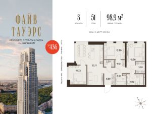ФАЙВ ТАУЭРС — первый жилой небоскрёб на Ленинском проспекте и самый высокий дом столицы за пределами делового кластера "Москва-Сити". Премиальный небоскрёб представляет собой ультрасовременное, высокотехнологичное здание, идеальный синтез стилей культовых высоток Москвы и небоскребов Нью-Йорка и поражает воображение уникальными видами, монументальной роскошью и совершенством форм. Величественная панорама, открывающаяся из окон вашей квартиры, завораживает: легендарные сталинские высотки, шпиль главного корпуса МГУ, "Москва-Сити", спорткомплекс "Лужники".