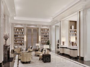 Архитектурное бюро Олега Клодта разработало дизайн общественных пространств ФАЙВ ТАУЭРС: гранд-лобби, камерную библиотеку c камином и лифтовую зону. Все необходимые сервисы сосредоточены на первых этажах небоскрёба: кафе, винотека, салон красоты, фитнес и детский клуб. Приватный Sky Club 49 — респектабельный лаундж с открытой террасой и ограниченным доступом на 49 этаже — только для резидентов.