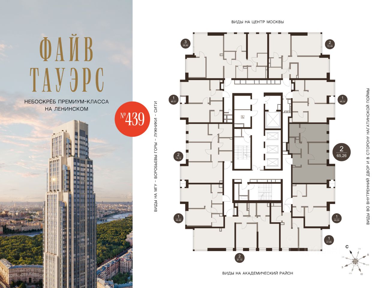 ФАЙВ ТАУЭРС — первый жилой небоскрёб на Ленинском проспекте и самый высокий дом столицы за пределами делового кластера "Москва-Сити". Премиальный небоскрёб представляет собой ультрасовременное, высокотехнологичное здание, идеальный синтез стилей культовых высоток Москвы и небоскребов Нью-Йорка и поражает воображение уникальными видами, монументальной роскошью и совершенством форм. Величественная панорама, открывающаяся из окон вашей квартиры, завораживает: легендарные сталинские высотки, шпиль главного корпуса МГУ, "Москва-Сити", спорткомплекс "Лужники".