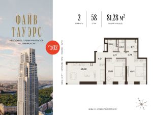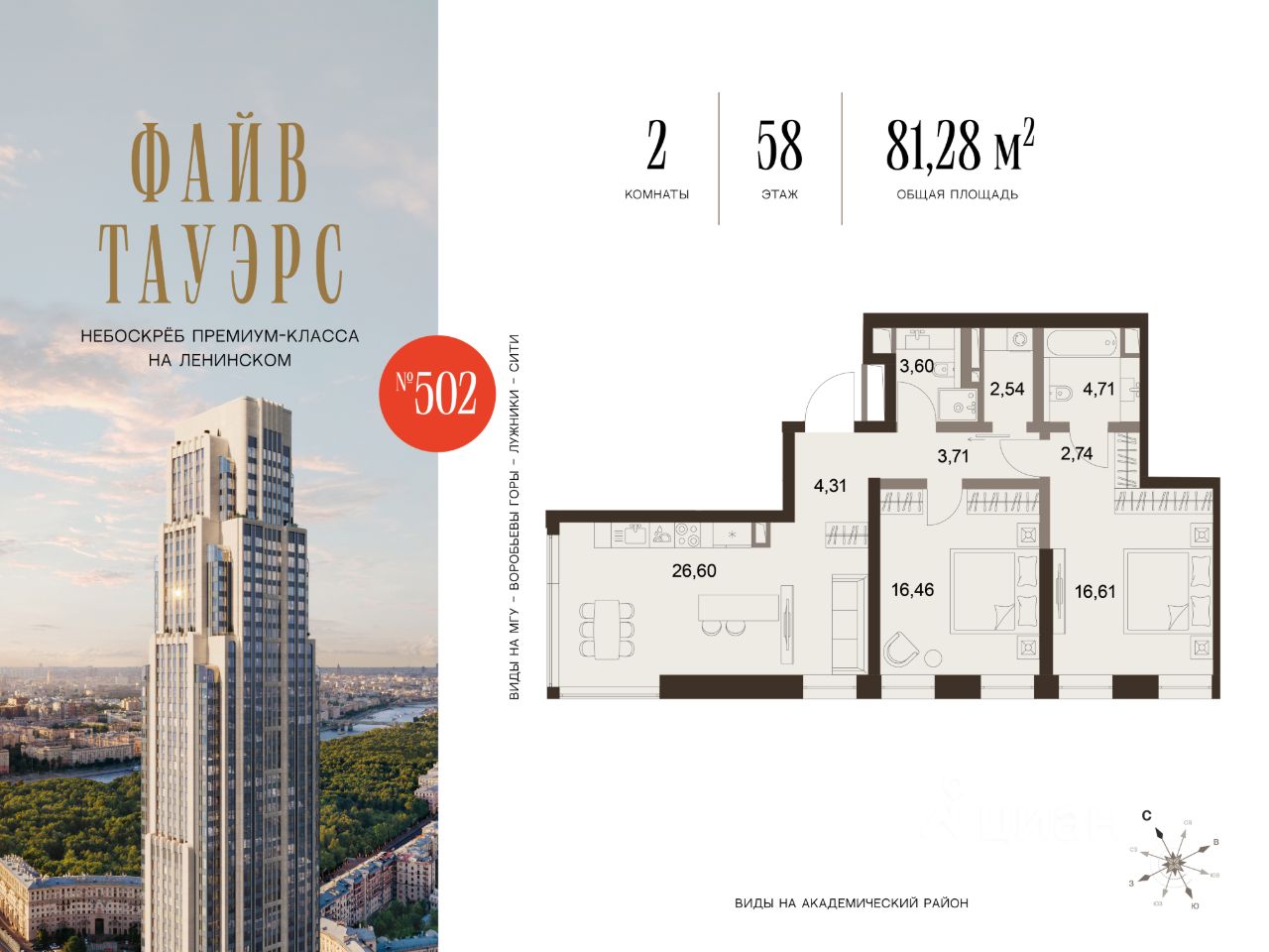 ФАЙВ ТАУЭРС — первый жилой небоскрёб на Ленинском проспекте и самый высокий дом столицы за пределами делового кластера "Москва-Сити". Премиальный небоскрёб представляет собой ультрасовременное, высокотехнологичное здание, идеальный синтез стилей культовых высоток Москвы и небоскребов Нью-Йорка и поражает воображение уникальными видами, монументальной роскошью и совершенством форм. Величественная панорама, открывающаяся из окон вашей квартиры, завораживает: легендарные сталинские высотки, шпиль главного корпуса МГУ, "Москва-Сити", спорткомплекс "Лужники".