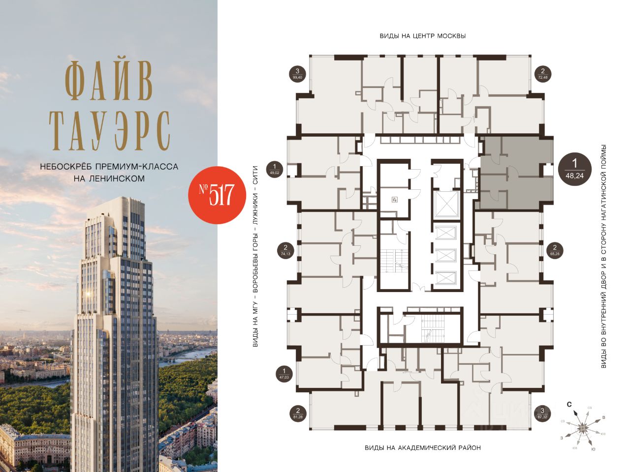 ФАЙВ ТАУЭРС — первый жилой небоскрёб на Ленинском проспекте и самый высокий дом столицы за пределами делового кластера "Москва-Сити". Премиальный небоскрёб представляет собой ультрасовременное, высокотехнологичное здание, идеальный синтез стилей культовых высоток Москвы и небоскребов Нью-Йорка и поражает воображение уникальными видами, монументальной роскошью и совершенством форм. Величественная панорама, открывающаяся из окон вашей квартиры, завораживает: легендарные сталинские высотки, шпиль главного корпуса МГУ, "Москва-Сити", спорткомплекс "Лужники".