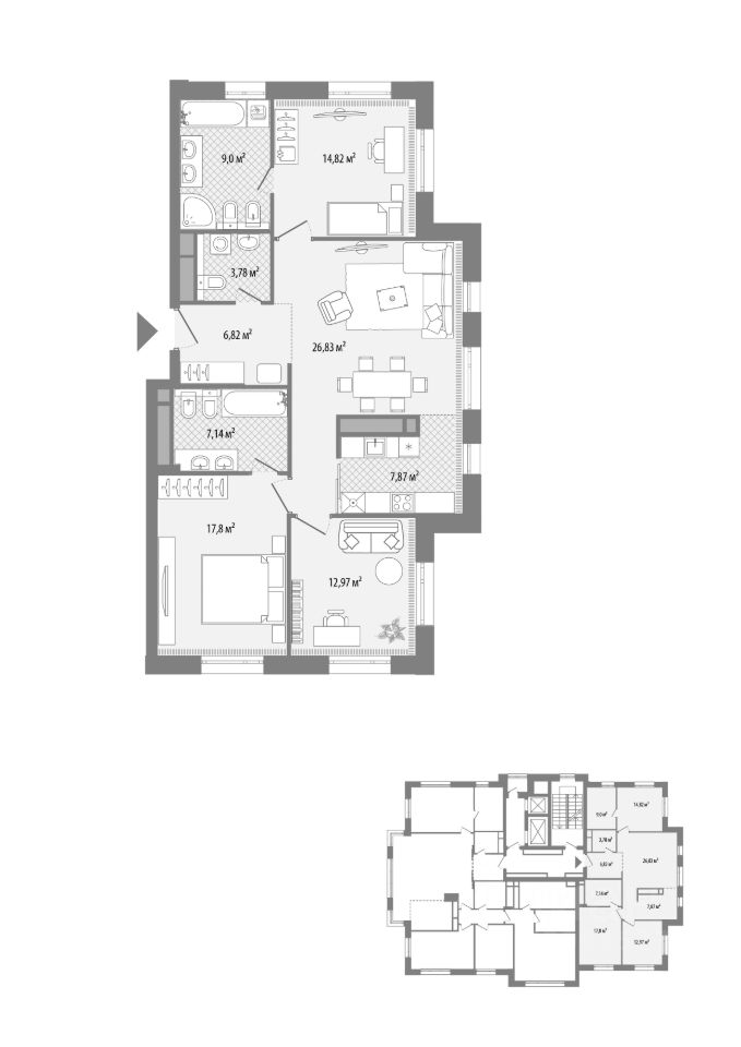 Продаётся видовой блок в 4 корпусе на 5 этаже, общей площадью 275,85 кв.м.