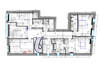 Роскошный двухуровневый пентхаус в ЖК "Садовые Кварталы" общей площадью 342,4 кв.м. На первом уровне располагается просторная кухня-гостиная с мягкой зоной и дровяным камином, гостевой санузел, кладовка и мастер-спальня с собственной гардеробной и ванной комнатой. На втором уровне находятся три детские спальни, каждая со своей ванной комнатой, гостевая спальня, игровая комната и постирочная, оборудованная техникой Miele.