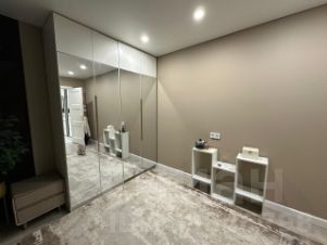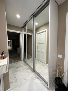 На кухне встроенный гарнитур с техникой,в комнатах мягкая мебель и шкафы.
