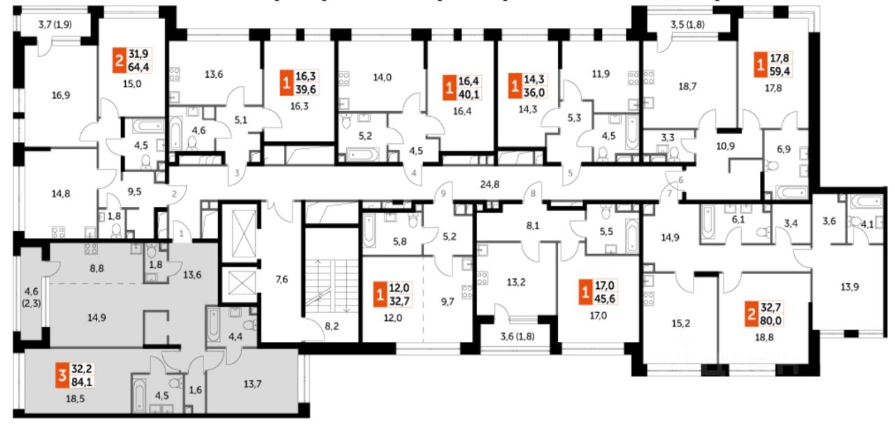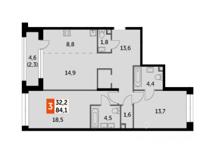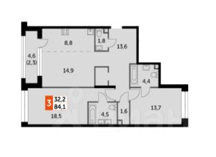 общая площадь - 84.1 м
