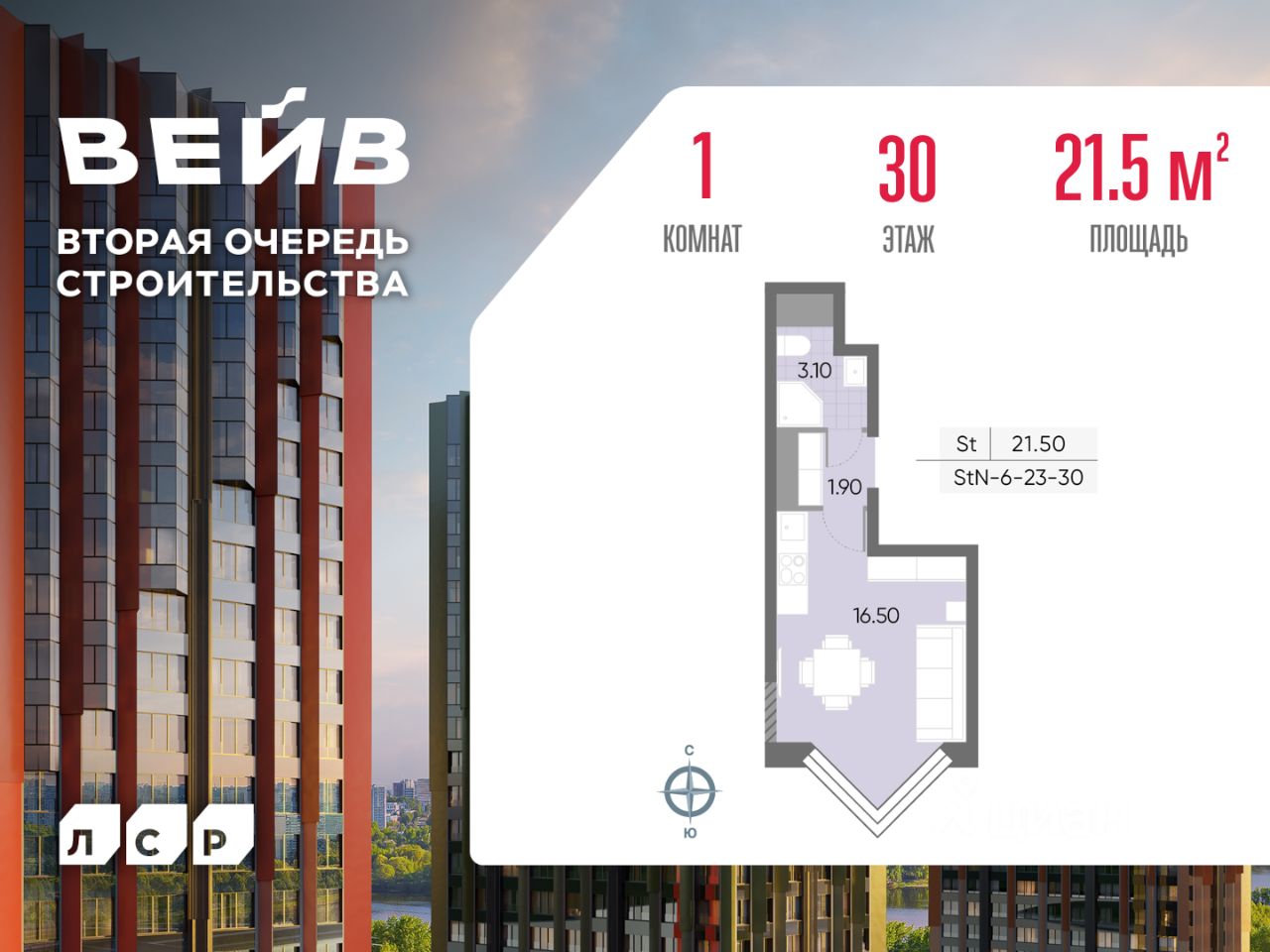 Продается квартира-студия общей площадью 21.5 кв. метров на 30 этаже жилого комплекса ВЕЙВ. Комплекс располагается на юге Москвы в районе Москворечье-Сабурово. В пешей доступности расположены станция МЦД "Москворечье" и станция метро "Борисово". Для автомобилистов есть удобное сообщение с Каширским шоссе.
