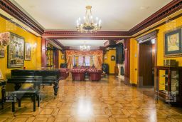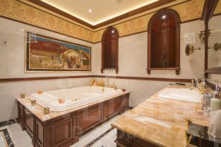 Высококачественная отделка, выполнена в английской классике с использованием натуральных дорогих материалов таких как мрамор, витражи, дерево, мозаика. Полностью оснащена дорогостоящей эксклюзивной мебелью из ценных пород дерева. Техника Kuppersbusch.