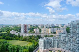 Светлая квартира с панорамным остеклением и вторым светом. Окна выходят в тихий двор, но при этом расположены по направлению к центру города с видом на Москва-сити и МГУ. Имеется собственный выход на эксплуатируемую кровлю.