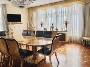 Отделка выполнена в современном стиле с применением дорогостоящих материалов. Функциональная планировка: кухня, столовая, гостиная с действующим КАМИНОМ. Основная спальня со своим санузлом, 4 спальни - гостевые, 4 полных санузла, гардеробные комнаты, постирочная комната, комната для персонала. Пентхаус полностью укомплектован эксклюзивной мебелью итальянского производства и оснащен необходимой бытовой техникой от ведущих производителей. Приточно-вытяжная вентиляция. Огороженная и охраняемая территория с подземным паркингом. Развитая инфраструктура района: школа, детские сады, лицей им. Курчатова, спортивные комплексы.