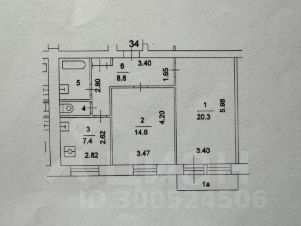 Площадь 56.7 кв.м. + балкон 2.7 кв.м.